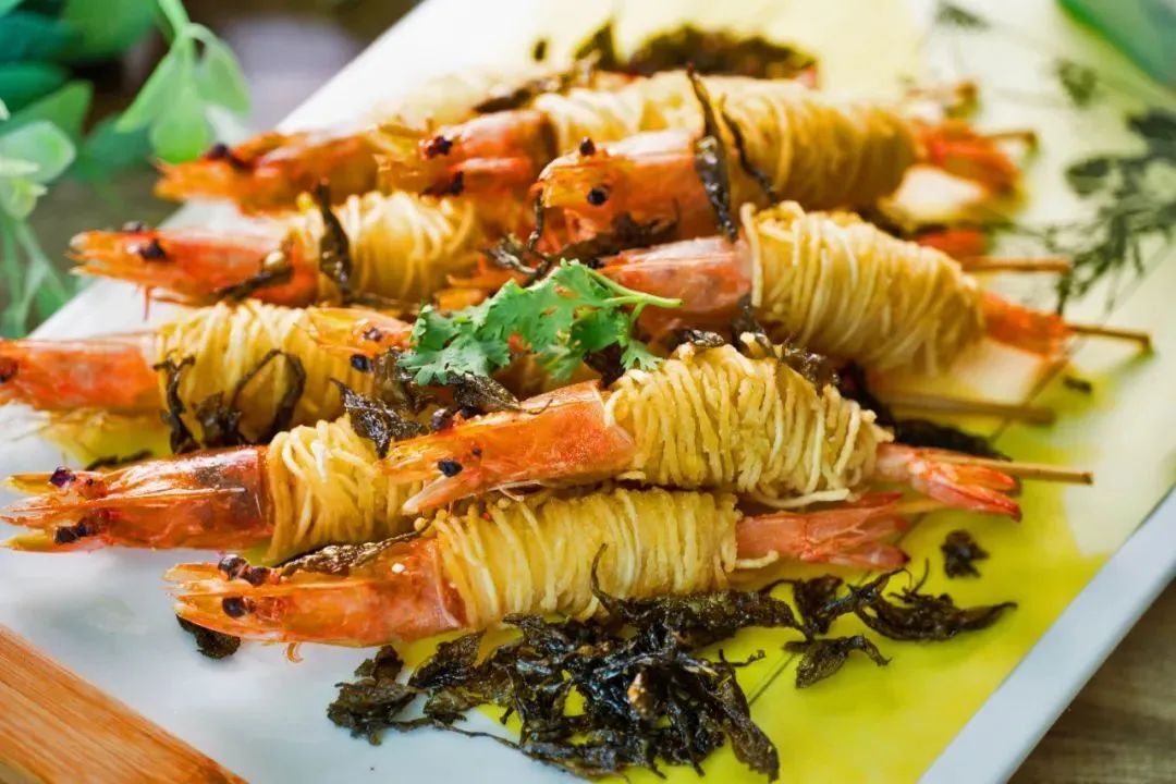 勤劳智慧的三门人将茶叶和对虾一起烹饪,制成了鲜甜可口的茶叶对虾。茶叶的醇香和对虾的鲜甜相互融合,一口下肚,还有淡淡的茶味萦绕嘴边。