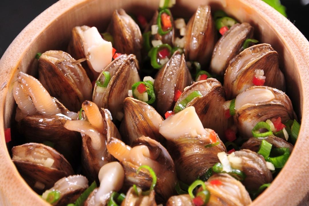 缢蛏的吃法也多,可以水煮,可以清蒸,可以红烧,还可以铁板烧,花桥人更是将所有烧法融合汇聚,制成一桌“蛏心如意宴”,征服了无数人的味蕾。