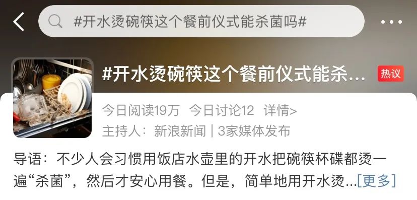 遗憾的是,饭店水壶里的开水并不一定是煮沸的,也并不一定持续煮沸了1~3分钟。所以,在开水本身就难以确保不含致病菌的情况下,用它来清洗碗筷恐怕难以得到预期的效果。