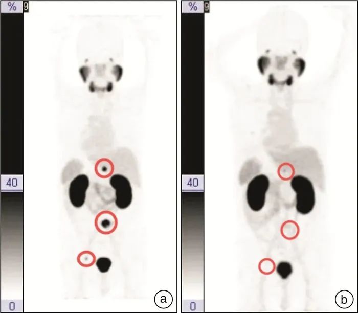 (177Lu-PSMA治疗前后68Ga-PSMAPET/CT显像结果;来源:参考文献[2])