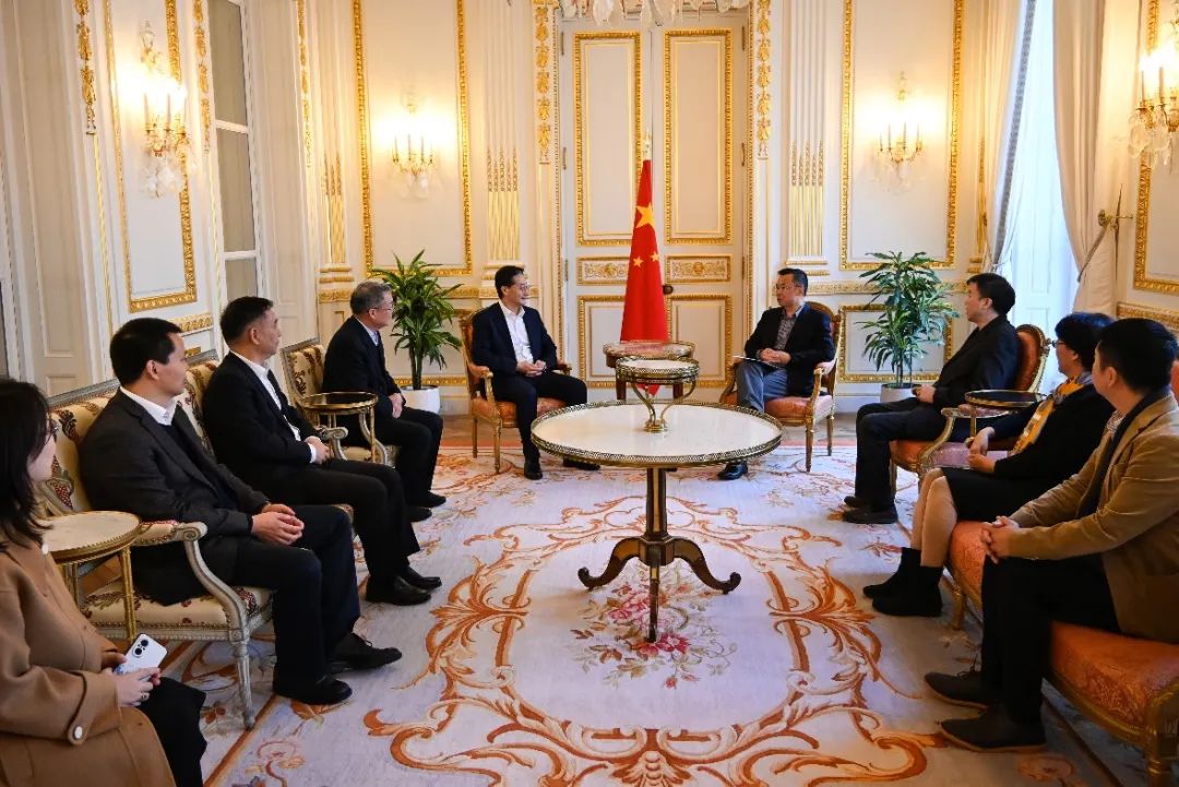 与空客国际人力资源转型副总裁让·蒙罗伊亲切交流访问期间,王云鹏一行来到中国驻法国大使馆,拜会驻法大使卢沙野,双方围绕拓展北航对法科教人文合作、深化中法合作办学等内容展开交流。卢沙野指出,航空航天、能源是中法务实合作的重要领域,两国教育合作有很好的基础和发展潜力,愿与北航一起努力推动中法交流,让中法中欧友好的种子植根两国人民特别是青年人心中。王云鹏指出,北航早在1985年就开始与法国高校开展合作,经过30余年的发展,目前已与32所法国院校、科研机构、企业等建立了合作伙伴关系,有着深厚的对法国合作根基。在中法建交60周年即将到来之际,学校将持续加强与法国相关高校在人才培养、科学研究、技术转移、合作办学等各领域的全方位合作,推动中法友谊再上新台阶。