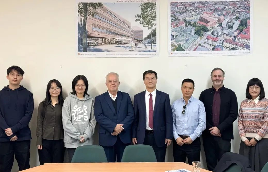 与INSA集团6位校长合影在德国慕尼黑,王云鹏一行首先来到慕尼黑工业大学,与慕尼黑工业大学校长托马斯·霍夫曼(Thomas F. HOFMANN)等会面交流,详细了解两校间人才培养、科学研究等方面合作开展情况,双方签署了校级合作备忘录,在推动联合课程建设、博士双学位联合培养、深化与产业界合作等方面开展了务实研讨。随后,王云鹏一行拜会了欧洲科学院院士、德国国家科学技术研究院院士、慕尼黑大学地球与环境科学学院院长唐纳德·布鲁斯·丁韦尔(Donald Bruce DINGWELL)、执行院长拉瓦莱(Yan LAVALLÉE),参观了学院高温实验室、EMPA实验室、岩石矿物实验室等,就拓展空间环境、地球科学领域的学术科研交流与丁韦尔教授达成了多项共识。