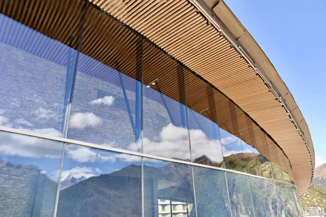 精心策划,多系统打造舒适参观环境。项目幕墙采用玻璃和石材双系统,兼顾室内保温采光与室外石砌风貌,玻璃采用三银low-e+充氩气+暖边+保温膜的配置,既抗紫外线又耐寒保温。项目还打造了弥散式供氧系统,馆内氧气浓度通过智能监测自主调节,可以始终维持在20.9%左右,减缓、降低游客高原反应。