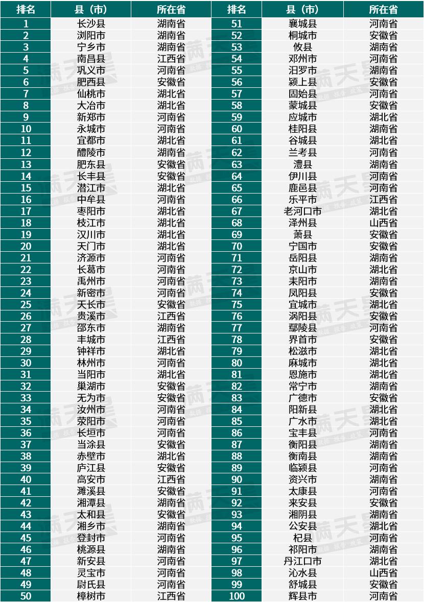 中部百强县出炉,河南28席排名第一