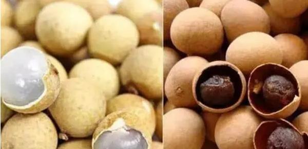 首先说龙眼,龙眼是我们日常在水果摊上买到的水果,新鲜的,可以直接吃。将皮剥开后,我们会发现龙眼肉是晶莹剔透的,与荔枝有点点相似。将其整个放进口里,鲜嫩多汁的口感给人感觉十分舒爽,冰冻之后食用更是非常解暑。