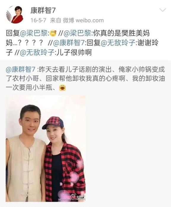 原本,康群智深知做演员的艰辛,在儿子的职业选择上,她更倾向于让儿子去上军校或出国留学的。偏偏儿子在耳濡目染下,也想做一名演员。