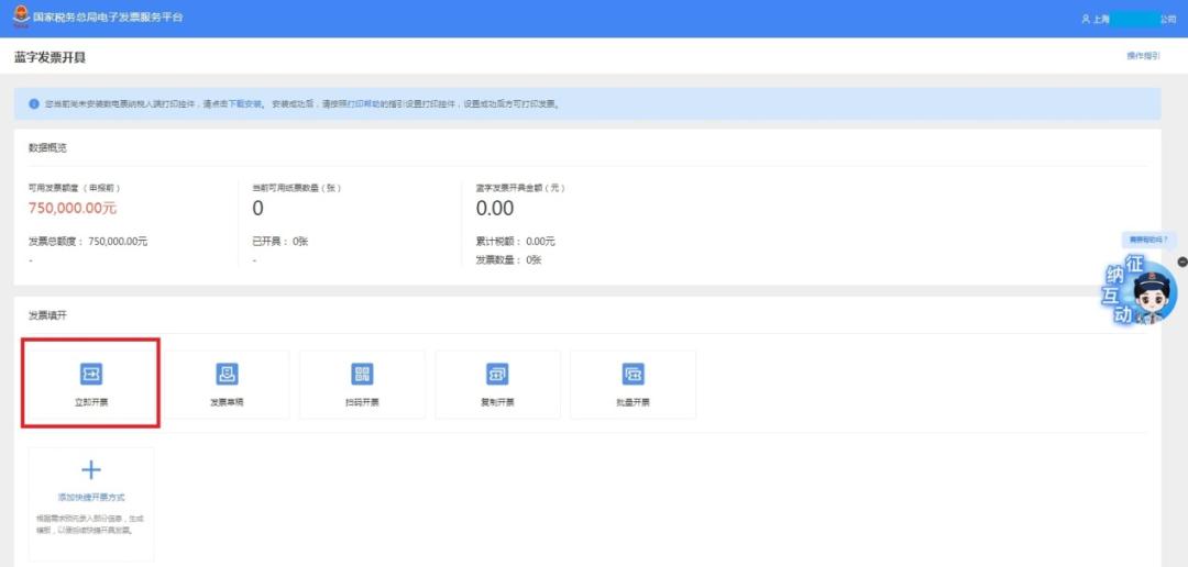 第一步进入开票界面