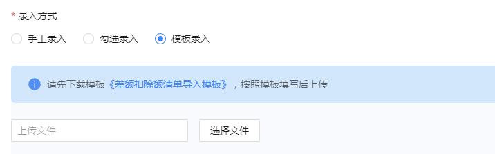 【方式三】模板录入:下载模板《差额扣除额清单导入模板》,按照模板填写内容后上传。