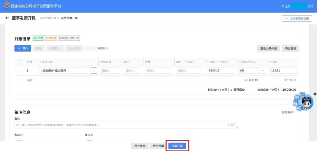 2.点击【立即开票】,选择【差额征税-差额开票】进入开票界面。
