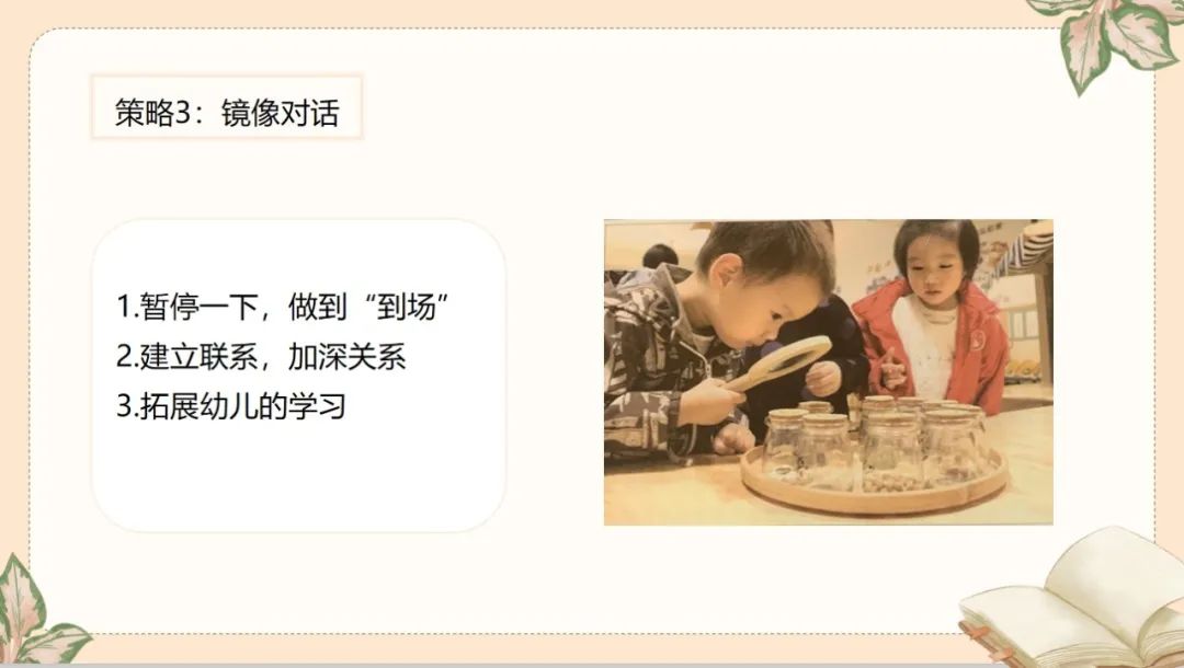 你的角色很重要,镜像对话的作用不可小觑!采用镜像对话能够让幼儿更自在舒服,更有信心,同时也能够推动他们的学习向前迈进一小步。同伴进行深入的互动。