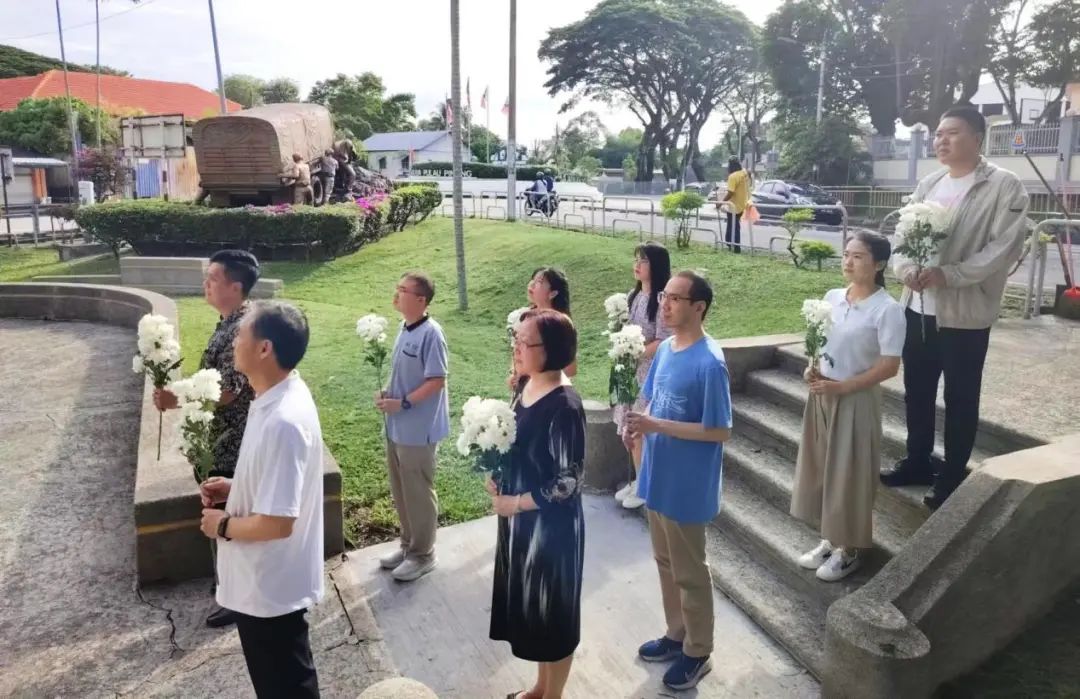 11月9日上午,出访团组瞻仰槟榔屿华侨抗战殉职机工罹难同胞纪念碑,并会同马来西亚理科大学人文学院部分师生举行了庄严的献花仪式。
