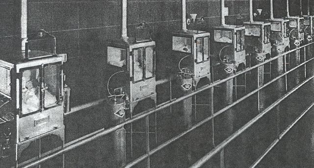 箱内的空气从室外引入,经过杀菌、过滤、加温,再从底部进入,保证单向流动。一切都自动运行,可以连续多天保持恒温恒湿。只需定时将婴儿抱出来喂奶洗澡称重。上方的表格记录着婴儿的姓名缩写、出生日期、体重等。展示室两侧,分别有乳母休息室和哺乳室。