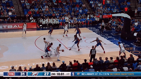 从主教练戴格诺特的战术安排中,我们也能窥见球队对于切特的期望:切特摘板后持球推进到前场已是雷霆常见的光景,他能抓住转换中的错位直接攻筐,或者传球给弱侧埋伏已久的射手;