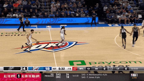 两年后,双方的境遇悄然发生了变化:文班从输家变成了赢家,他斩获法甲MVP,在2023年选秀中轻松夺魁,成为圣安东尼奥盼星星盼月亮等来的状元秀。切特却在NCAA锦标赛中早早出局(最后一场同样犯满离场),新秀赛季又因为一场野球赛事中的受伤无疾而终,不得不静养一年才迎来复出。同样发生变化的还有两人的打法:文班经历了法甲的野蛮生长后,在马刺开始从五号位改打四号位,磨炼侧翼的进攻技巧。切特则在更早的时间沿着反方向狂奔:从全能侧翼向内线转型,被雷霆选中后则被彻底定位为中锋,是这支青年军等待已久的最后一块拼图。