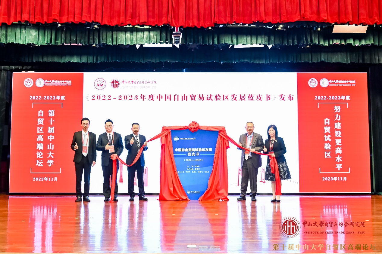论坛上,中山大学自贸区综合研究院正式发布《2022-2023年度中国自由贸易试验区发展蓝皮书》及“2022-2023年度中国自由贸易试验区制度创新十佳案例”。据介绍,该蓝皮书已连续八年发布,内容分为总论、专题篇和区域篇三个板块,书中围绕中国自由贸易试验区战略和主要任务、取得的改革创新成果、未来的制度创新方向,系统介绍各自贸试验区建设情况,提出未来政策创新方向与保障措施。蓝皮书已成为国内自贸试验区管理机构的重要参考读物。而“十佳案例”则围绕“创新性”、“操作性”、“契合性”三大原则,中山大学自贸区综合研究院组织专家团队对2022-2023年度全国自贸试验区的优秀案例进行评选,最终遴选出的十佳案例分别是云南红河自贸片区(“互市电商跨境出口”新模式)、湖南岳阳自贸片区(进口转关货物内河运费不计入完税价格审价创新模式)、广东南沙自贸片区(抢占新技术制高点建设未来产业先导示范区)、安徽合肥自贸片区(率先试点职务科技成果所有权改革创新模式)、山东青岛自贸片区(创新“蓝色资产”分类标准)、广西钦州港自贸片区(进口新能源材料特色供应链金融模式)、辽宁大连自贸片区(“企业邻里”应急互助新机制)、陕西西安自贸片区(“引育留用”全链条人才服务体系)、上海自贸试验区(涉外商事纠纷一站式解决机制)、黑龙江哈尔滨自贸片区(集成化行政执法监督体系)。