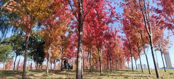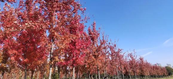 与阜城西湖大道两侧的枫叶林比