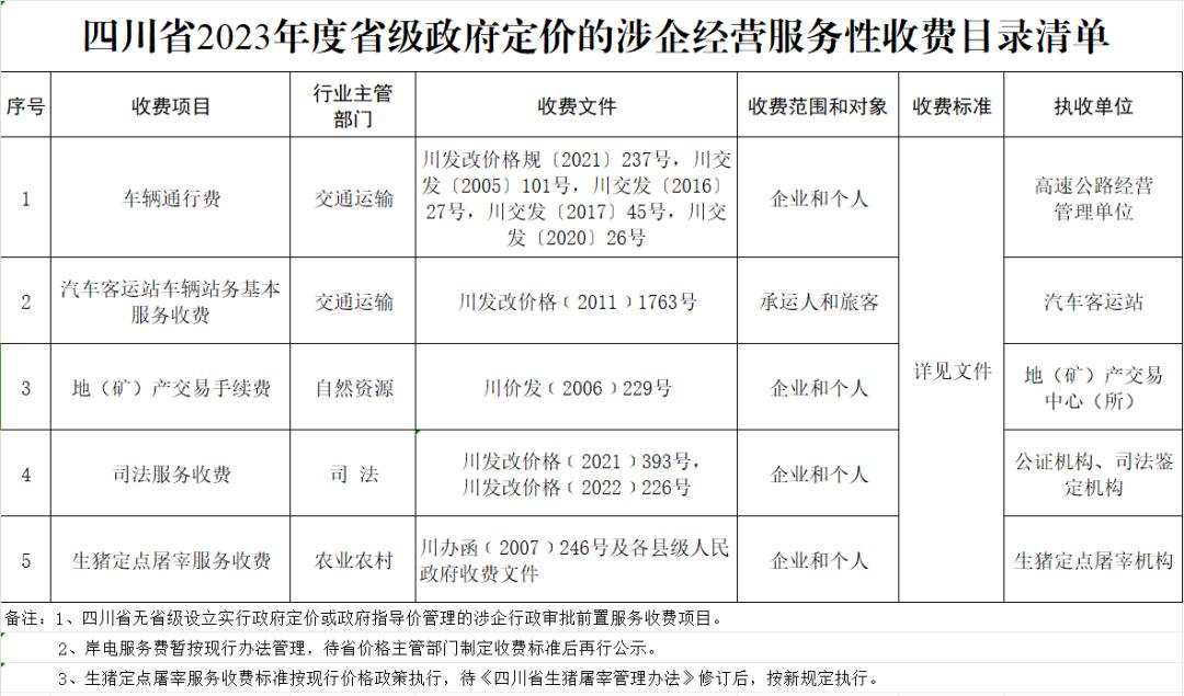 《四川省2023年度政府定价的