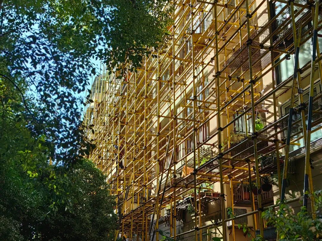 施工团队在各处有序建设中,整齐的脚手架间,已有部分楼栋揭下面纱,露出修葺一新的外立面,展现出与过去截然不同的风貌。座谈期间,支部书记和相关部门负责人介绍了“美丽家园”的建设流程、细则以及践行全过程人民民主的经验做法。“一楼一方案”的制定、居民议事会的模式、公开透明的材料展台,无一不体现着党组织的有力引领和各个单位工作的用心、用情、用智。
