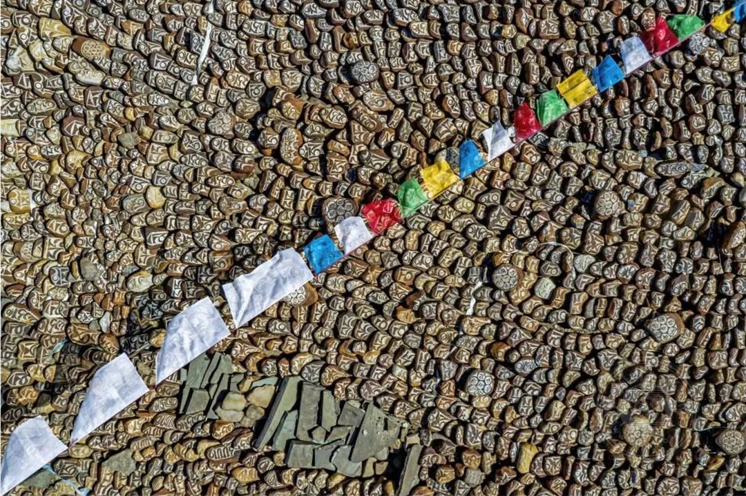 无数的玛尼石上穿过一行经幡,