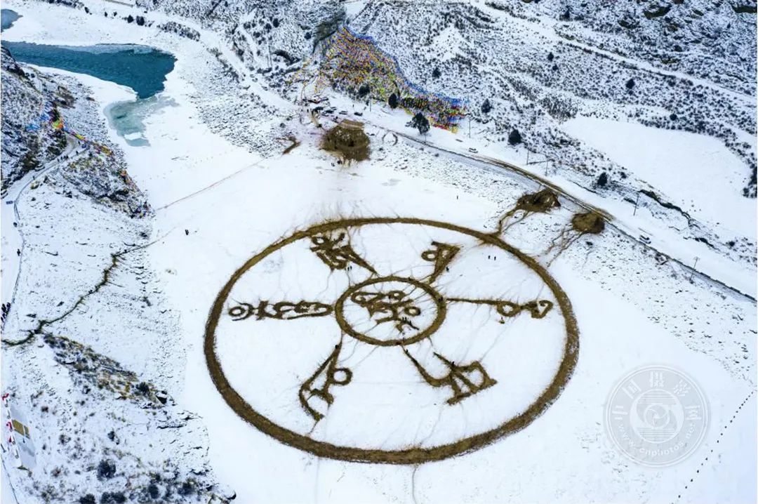 通天河上人们用沙子和石块书写着祝福,