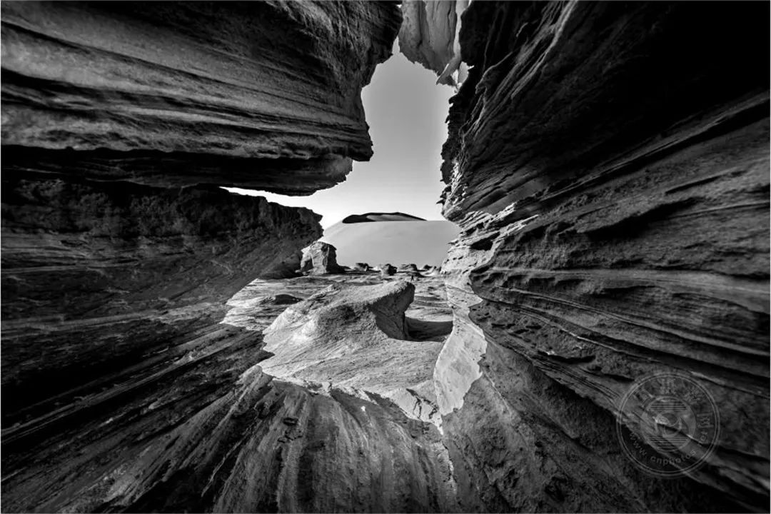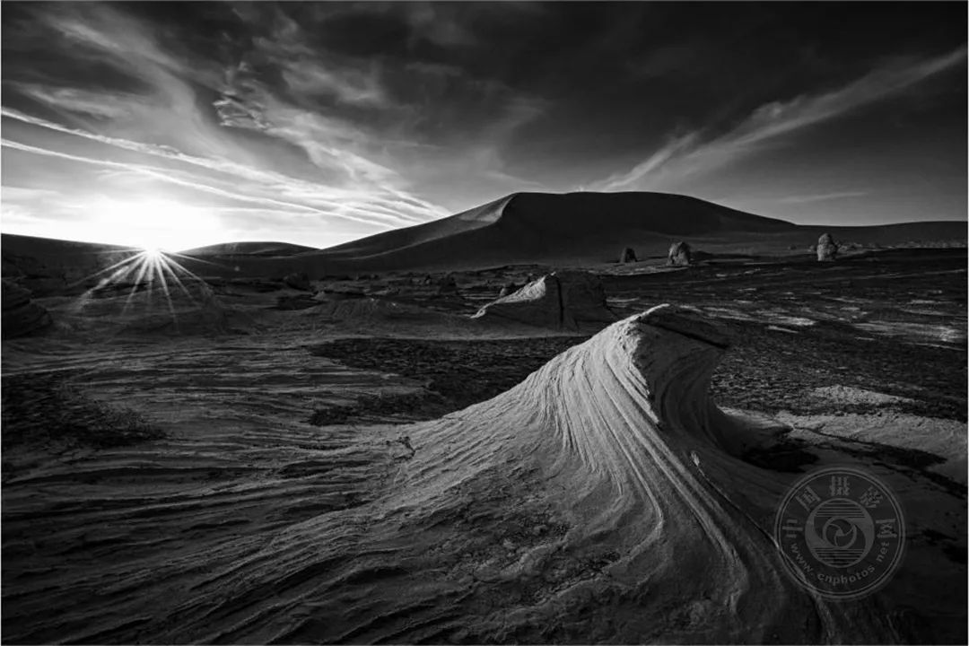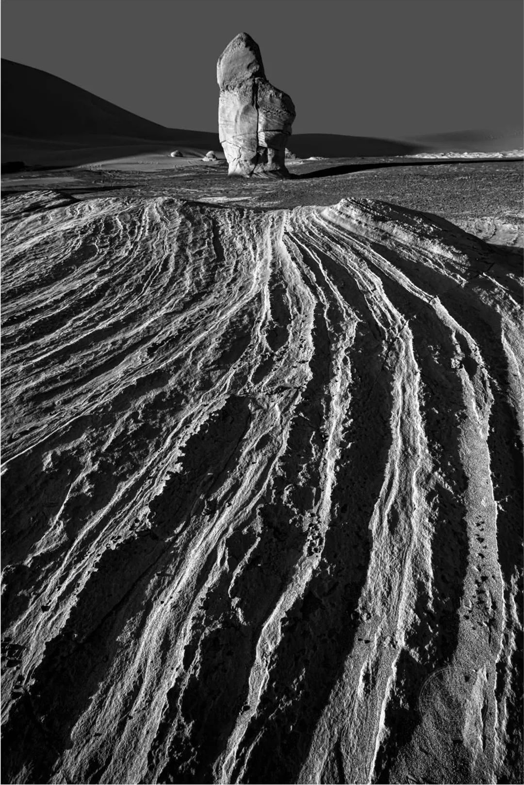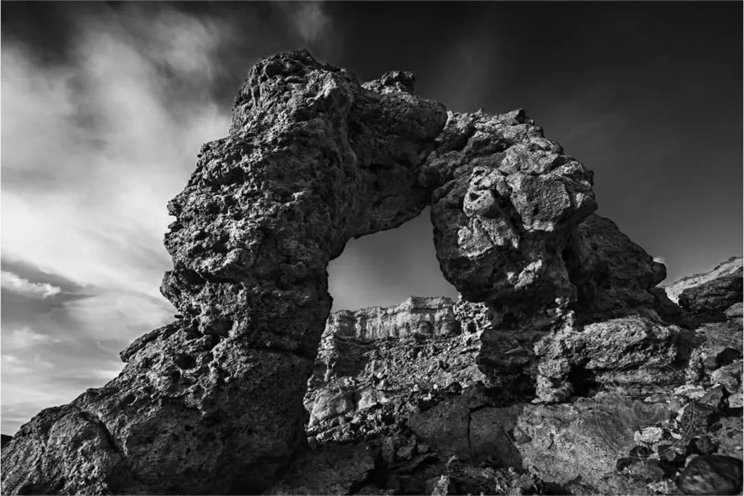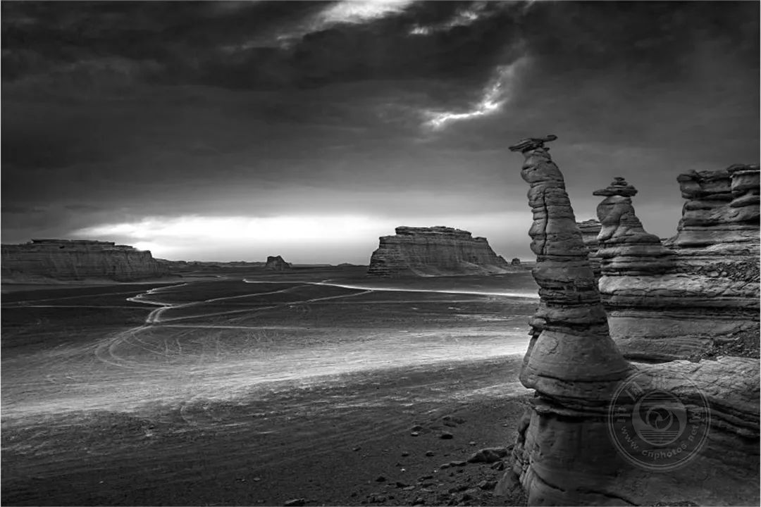 大海道——是我心中充满无限可能的地方,但是现实中的他却是那样的荒凉、那样的孤寂,它横跨吐哈盆地的南湖戈壁,属于典型的大陆性气候,干旱、多风、少雨,人迹罕至。遍地的火山岩,独特的雅丹地貌,无数造型奇特、风蚀肌理的岩石,它深深的吸引着我。我用黑白的表现形式,来表现我对它的敬畏与爱。