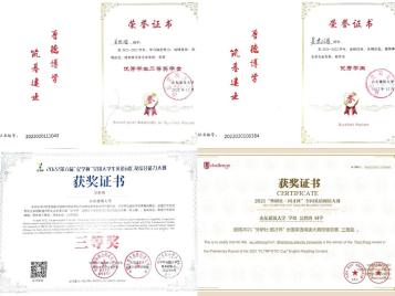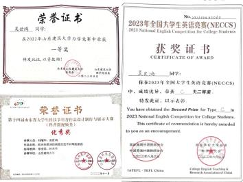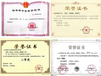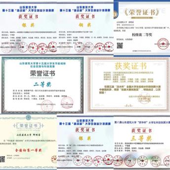 三年智育及综合测评成绩专业排名第一,以学院及专业第一的推免总成绩获得推免资格,先后荣获国家奖学金、校长奖章、山东省优秀学生,连续两年获校优秀学生一等奖学金、校级优秀学生干部标兵、校级优秀学生、校级优秀团员、优秀志愿者等10余项荣誉称号。参与发表多篇论文、专利。获国家级奖项五项,省级两项,校级、院级奖项二十余项。积极投身志愿服务事业,累计服务次数80余次,总时长500余小时。