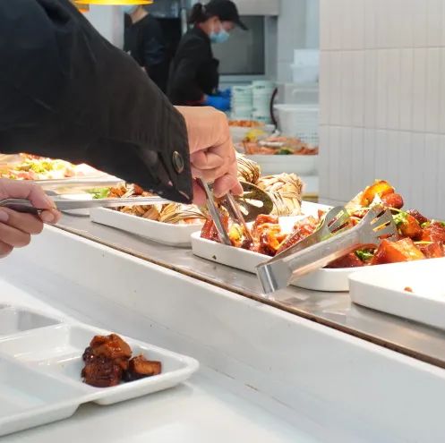 像王老伯这样坐在用餐区堂食的不在少数,但也有不少居民选择打包饭菜带走。有位阿姨一次性打包了7个荤菜:“我们都70多岁了,买菜烧饭既麻烦又吃得单调,在这里买菜打包方便、实惠,花样也多。”除了周边居民,更有不少食客是从外区赶来的,有的从中山北路赶来打包黄油鳝丝,因为这里都是现杀现做,非常新鲜;还有为了小时候的味道专程乘车半小时从静安寺来打包锅贴的;红烧肉、熏鱼、排骨也是食堂的推荐菜,从梅川路过来的客人已经来过好几回了。