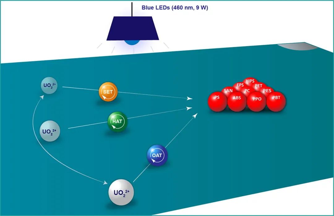 “光解”塑料的方法是以铀酰离子作为催化剂,以光照作为能量来源,对常见塑料垃圾进行降解。作为催化剂的铀酰离子来自海水中的铀238。