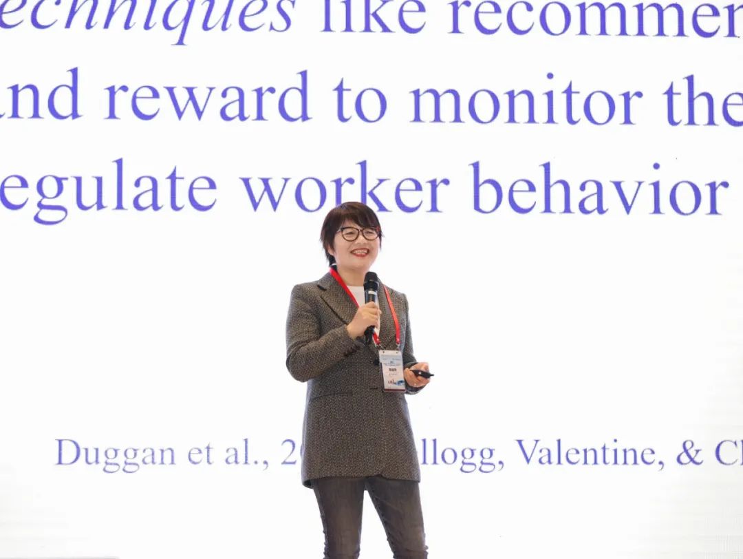 Management and Organization Review 资深编辑,同济大学管理高等研究院教授梁建结合零工经济的发展给管理领域带来的激进变化分享了自己的相关研究。研究中,他创造性地提出了贪婪工作的概念,指出贪婪工作是一种工作状态,其特征是不间断地参与与工作有关的活动,对追求与工作有关的奖励和奖励有永不满足的欲望,难以从工作中解脱出来。雇佣关系和平台算法控制机制的结合,塑造了零工在完成订单时的贪婪工作行为。梁建教授介绍,通过采取访谈和参与式观察等研究方法,研究通过从心理学角度阐释幻觉自由的形成,有助于理解零工工人的工作经历。同时,研究也详细阐述基于算法的控制机制在零工工人工作经验中的核心作用,提供了一个更全面的视角来理解零工如何受到平台设计的影响。