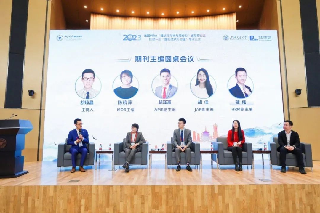 学术会议上,MOR主编陈晓萍教授,AMR副主编林泽富教授,JAP副主编胡佳教授,HRM副主编贺伟教授围绕各期刊的最新发展动向和研究成果进行了圆桌交流。他们从不同期刊的视角出发,解读了数智情境下学术研究所面临的机遇与挑战。