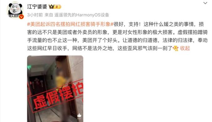 “损害骑手形象”,美团称将起诉4名摆拍网红!