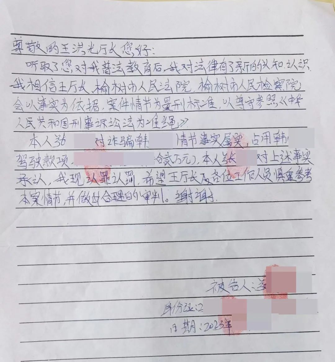 近日,榆树法院刑事审判庭审理一起诈骗罪案件,被告人张某从拒不认罪到后悔不已,得益于审判长王洪光对被告人的谆谆教诲。