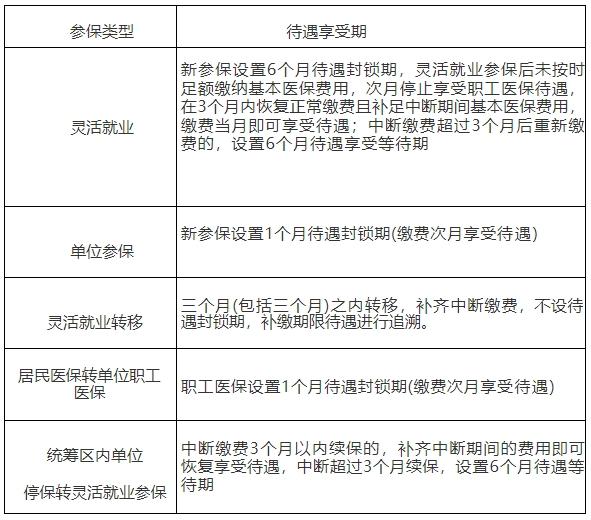 第三种是符合规定的职工医保中断缴费人员、当年退出现役的军人及随迁的由部队保障的随军未就业配偶、刑满释放等退出其他制度保障的人员,在居民医保集中参保缴费期结束后可按规定补办居民医保参保手续。上述人员在3个月内接续参加居民医保的,不设待遇享受等待期,缴费当月即可按规定享受待遇,中断期间的待遇可按规定追溯享受;超过3个月接续参加居民医保的,设置3个月待遇享受等待期。