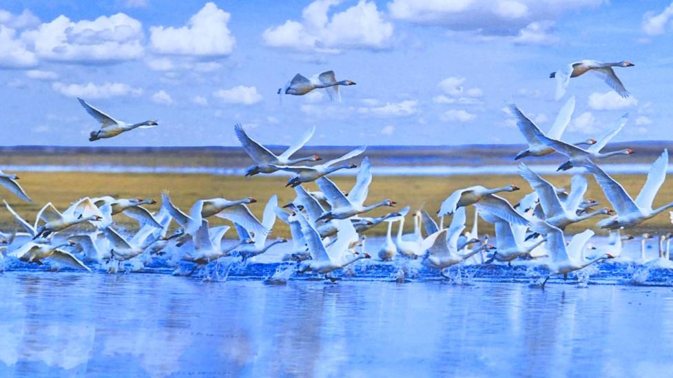 “摄影作品《天鹅湖》中的天鹅不仅代表圣洁美好,吉祥喜悦,更是南北沟通的祥瑞,连接起两地的深厚友谊。绘画作品《瑞雪》中的白桦树被视为忠贞执著的化身,祝愿两地友谊之树长青。蒙、汉两种文字书写的‘携草原之情,掬江南之谊’,将北方的豪迈之情与南方的优雅诗意融合在一起,推动两地进一步交往交流交融。”鄂温克族自治旗美术家协会主席孙勇说。