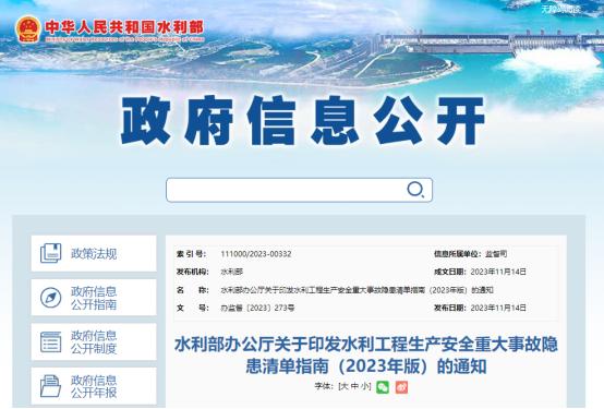 近日,根据国务院安委会办公室关于进一步完善隧道工程重大事故隐患判定工作的要求,结合水利行业实际情况,水利部监督司组织对《水利工程生产安全重大事故隐患清单指南(2021年版)》进行修订,形成了《水利工程生产安全重大事故隐患清单指南(2023年版)》。