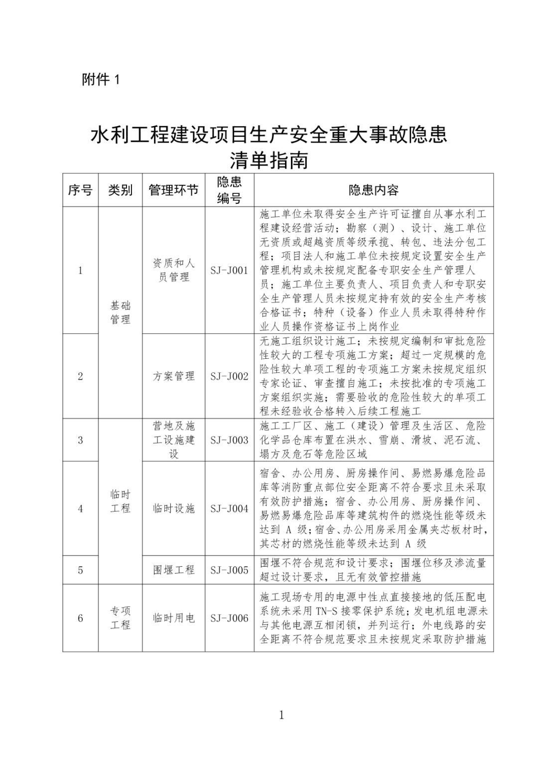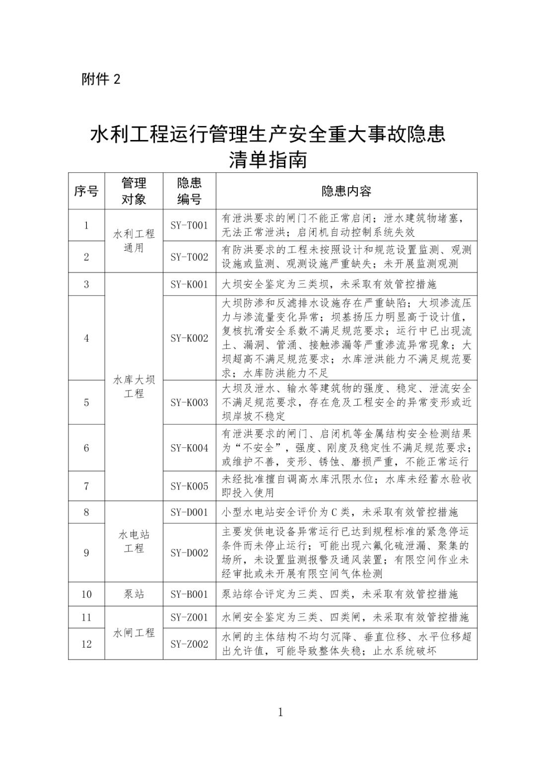 以下为《水利工程生产安全重大事故隐患清单指南(2023年版)》全文