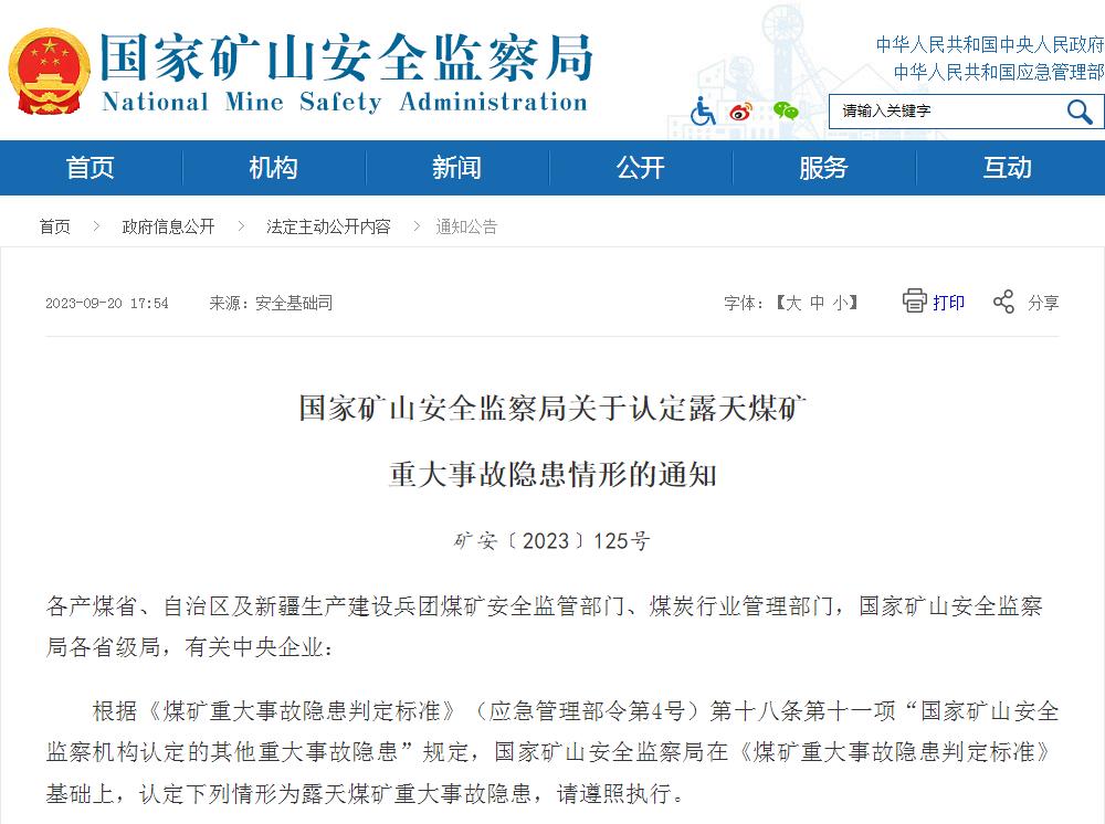 https国家矿山安全监察局关于认定露天煤矿重大事故隐患情形的通知