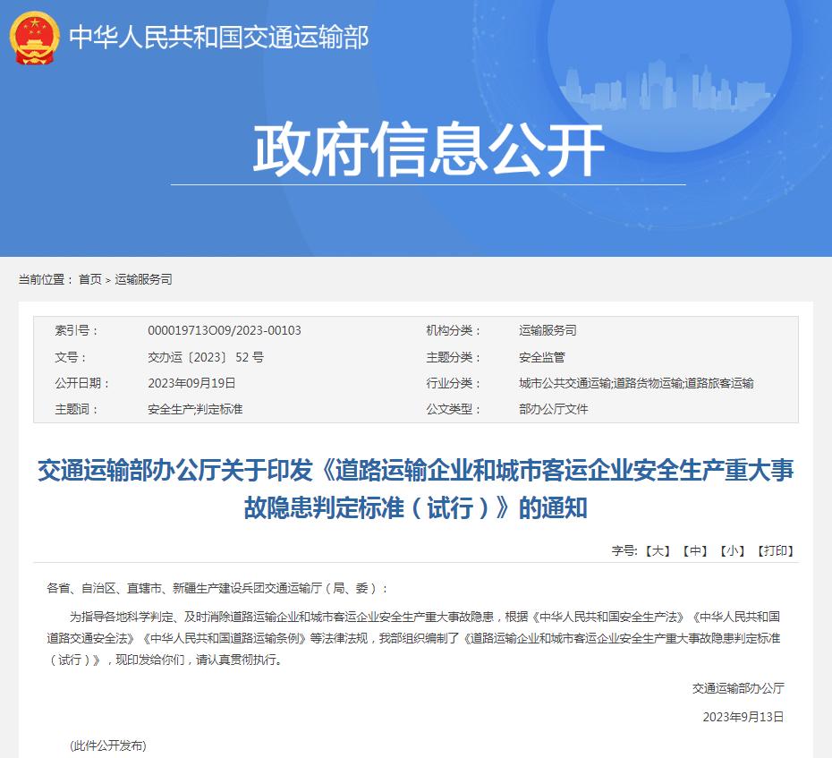 《道路运输企业和城市客运企业安全生产重大事故隐患判定标准(试行)》