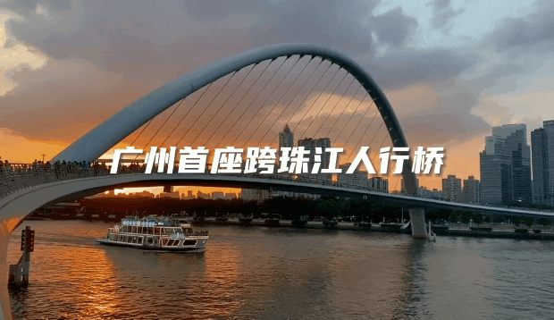 作为广州第一条跨珠江人行桥,海心桥是世界上跨度最大、桥面最宽的曲梁斜拱人行桥,也是赏日落的绝佳好地方!(*周末去记得提前在海心桥微信公众号预约上桥,灯光节期间每日17时-23时进行封桥管控)