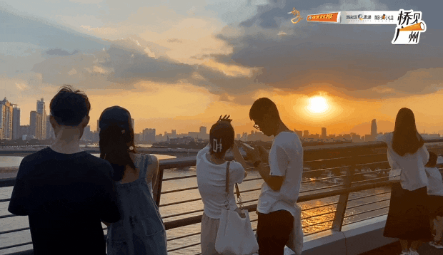 图/信息时报海心桥连接起广州塔、二沙岛、海心沙、花城广场等热门景点,漫步桥上,不仅可以观赏珠江两岸风光,和落日来上一张合影,氛围感直接拉满。