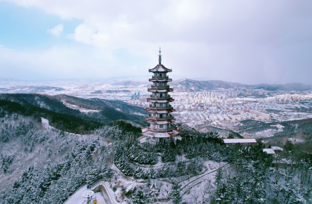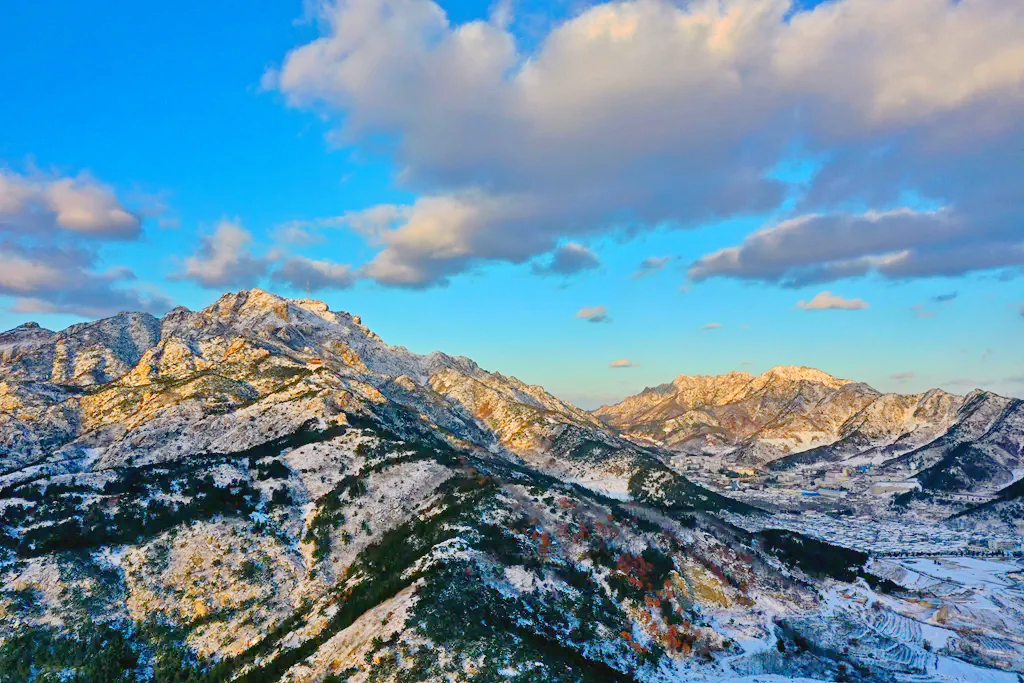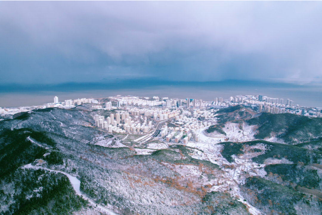 “散关三尺雪,回梦旧鸳机”。大雪纷飞之时,烟台各个山间银装素裹,美不胜收,远远望去仿佛一幅简洁而优雅的水墨画。