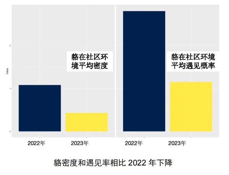 分析典型小区个案,貉密度和遇见貉的概率也呈现明显下降趋势。