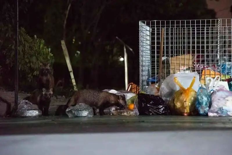 小区管理不善导致的垃圾外溢和无序投喂猫粮,是大幅增加小区内貉显著性的两大因素。“貉口普查”发现,垃圾外溢和投喂猫粮最多可将貉的遇见率分别增加101%、88.6%,在一些同时存在垃圾外溢和投喂猫粮的小区,貉的遇见率可达无垃圾外溢、无投喂猫粮情况下的2.9倍。