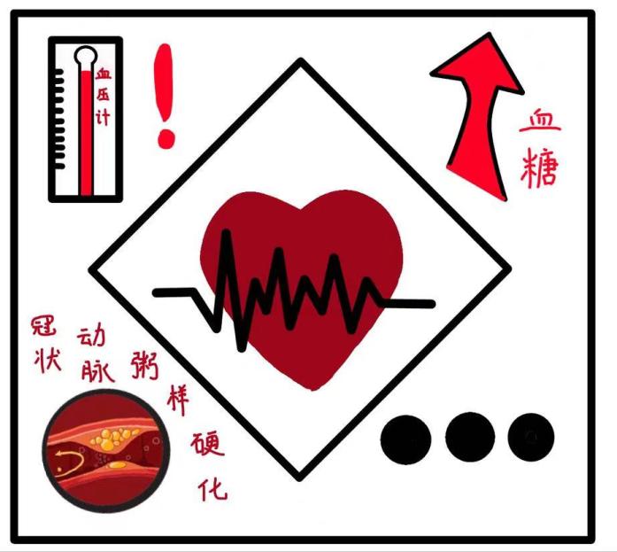 如三高、肥胖、糖尿病、冠状动脉粥样硬化等疾病容易导致血脂沉积到冠状动脉血管内膜,从而造成斑块,导致管腔狭窄,引起心肌的缺血;同时,此类疾病也会损害血管内膜,导致代谢紊乱,进一步诱发心肌梗死。