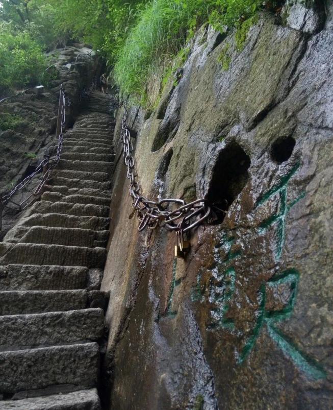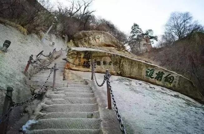 华山的登山之路蜿蜒曲折,到处都是悬崖绝壁。智取华山路开辟之前,华山只有一条十分陡峭的道路可以通到山上,人们常用“自古华山一条道”的说法来形容它的险要。
