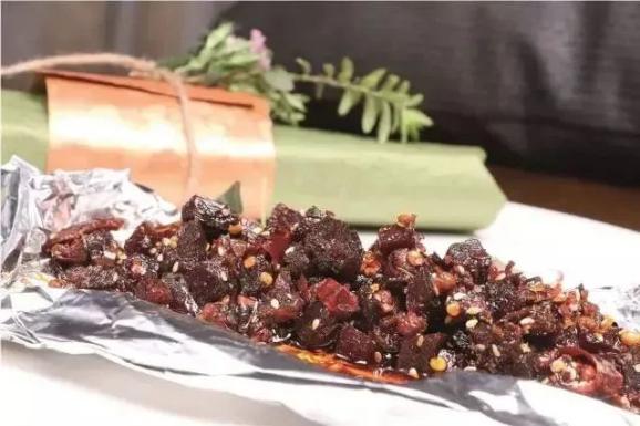 鹿肉的价格其实并不贵,冰鲜养殖鹿肉每斤成本仅为20元,但因较少使用,会令食客感到很新奇。成都华粹元年酒店的这道“陈皮鹿肉干”,是在传统川菜“陈皮牛肉”的基础上加以改良:鹿肉经过腌、卤、炸三步,内软外酥,再次入锅加大量辣椒、花椒、陈皮收浓滋味,带着浓郁的陈皮香。批量预制: