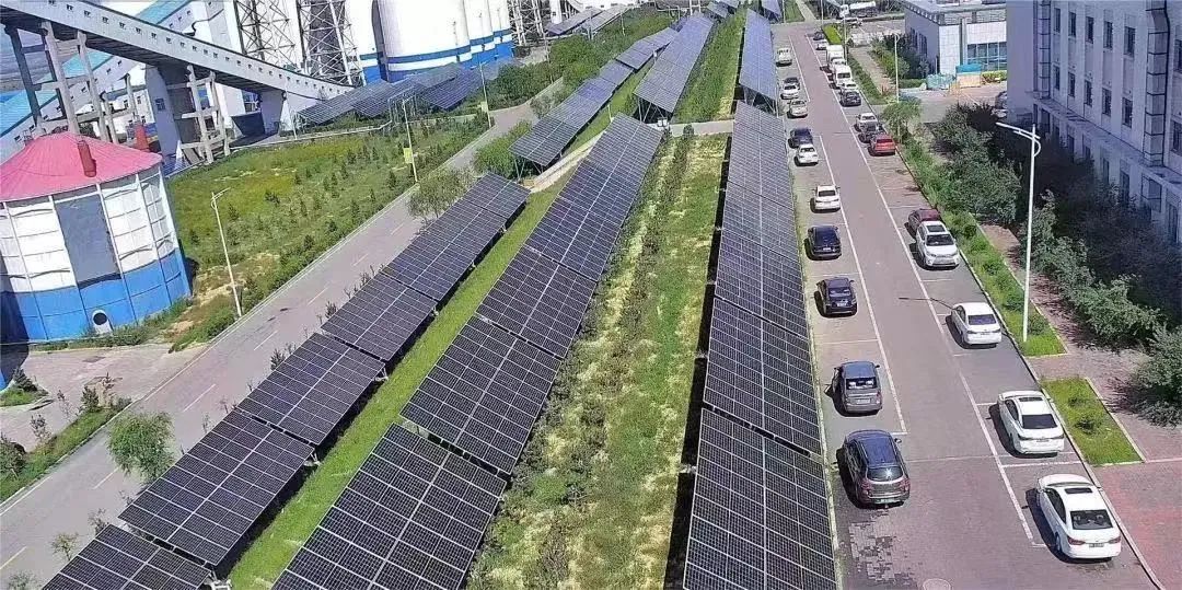 在铜川镇塔拉壕煤矿矿区中,成千上万块光伏板在绿化带、楼宇屋顶以及矿区的每个角落伫立闪烁。这片曾经荒芜破损的深山矿区如今也换上了“新皮肤”。