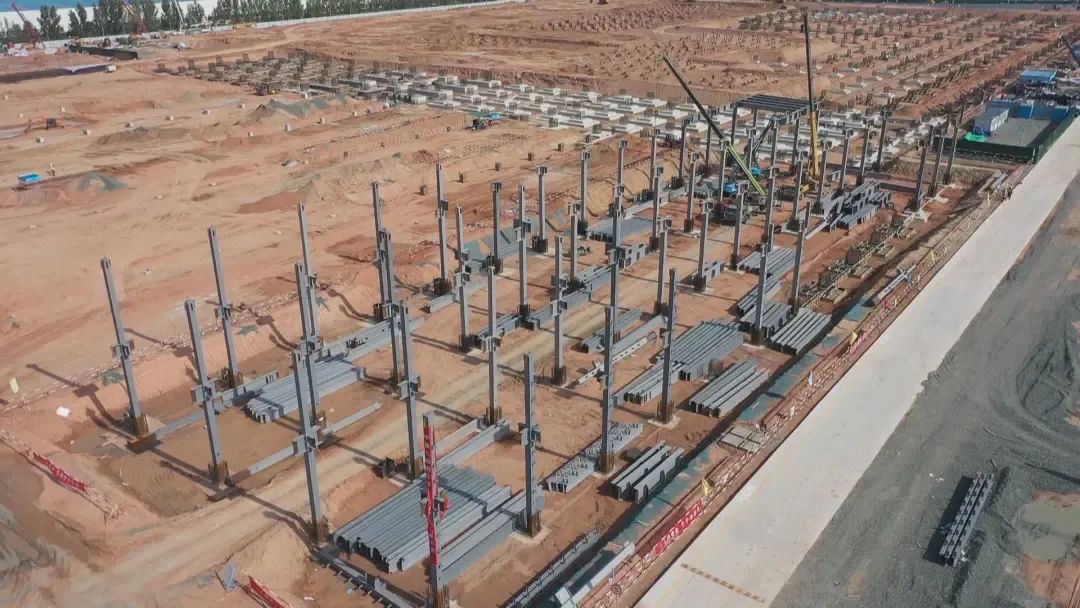 记者采访时获悉,今年四月,总投资180亿元的晶澳太阳能鄂尔多斯20GW硅片、30GW电池项目奠基开工。该项目主要建设有光伏全产业链低碳示范基地,生产15万吨工业硅、10万吨多晶硅生产线,年产20GW拉晶/切片、30GW电池(N型)、5GW光伏组件、光伏辅材(20GW碳碳、20GW石墨、5GW边框、5GW胶膜)生产项目。在不久的未来,一条光伏全产业链将在这里建成。“晶澳项目目前正在加紧施工,主要厂房所有单体已开展施工,分别进行独立基础施工,钢柱钢梁安装,灌注桩施工,预计今年11月中旬完成主要单体封闭,明年6月份项目部分投产。”晶澳太阳能全产业链低碳示范基地项目副经理陶都介绍说。