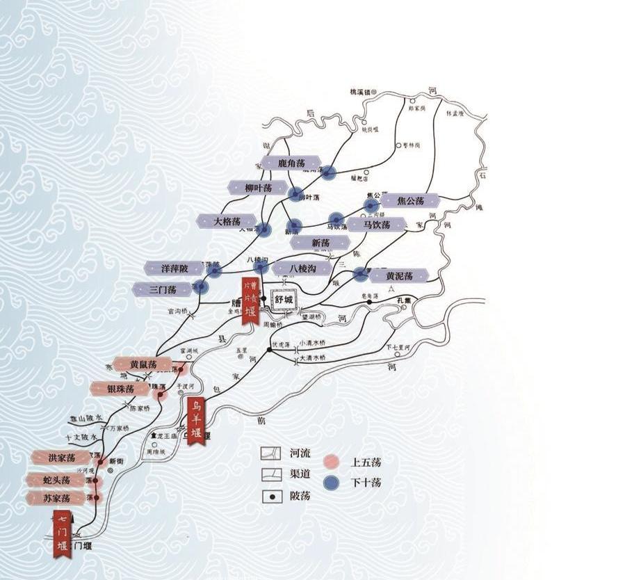 “三刘手辟三渠后,万井恩同万古流。菖叶杏花如画里,漫愁春色冷千秋。”清人胡永亨的一首《三堰余泽》,道出了龙舒大地上千百年来对七门堰的感恩之情。七门三堰,不仅仅是水利灌溉工程,也成为了舒城自古以来的一道景观,三堰余泽也与牧马旧市、金鸡古墩、龙眠毓秀等美景同列为龙舒八景之一。