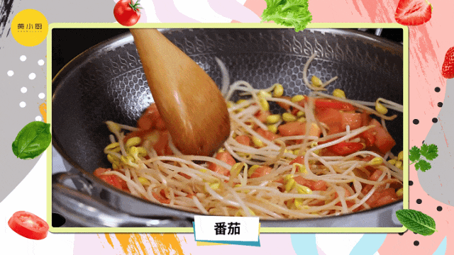 2热锅倒油后放入蒜、姜、辣椒炒香后,倒入豆芽菜、番茄丁继续翻炒至半熟;